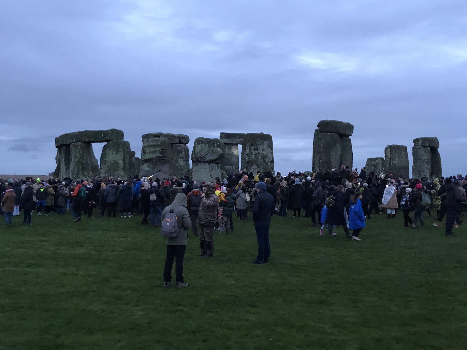 We squashed into the inner circle to welcome the sunrise, but as it was cloudy, we experienced a ‘lightening of the sky’.